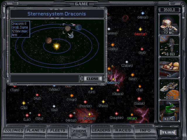 Das Heimatsystem ist fantastisch. Es gibt einen zweiten Planeten, der genau so viel Bevölkerung fasst wie mein Heimatplanet. Ein dritter Planet ist sogar riesig, allerdings Wüste und Hoch-G.