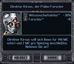 Allein die 9 Kommandopunkte sind die Einstellung wert, und ein sehr guter Arbeitsleiter ist er auch noch. Damit habe ich jetzt einen 45-prozentigen Wissenschaftsleiter und einen 45-prozentigen Arbeitsleiter, die ich abwechselnd in meinem einzigen System einsetze. Je nach Leiter wechseln alle Kolonisten in die Forschung oder in die Produktion.