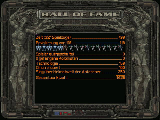 Der Orion-Punkt ist erreicht. Das ist mehr, als ich von diesem Spiel erwartet hatte. Dass mich die Silicoiden mit ihrer monströsen Flotte noch nicht angegriffen haben, mag daran liegen, dass es immer ein leichteres Opfer gab. Aber den Orion hätten sie sich längst schnappen können.