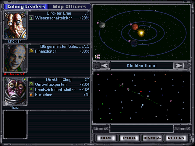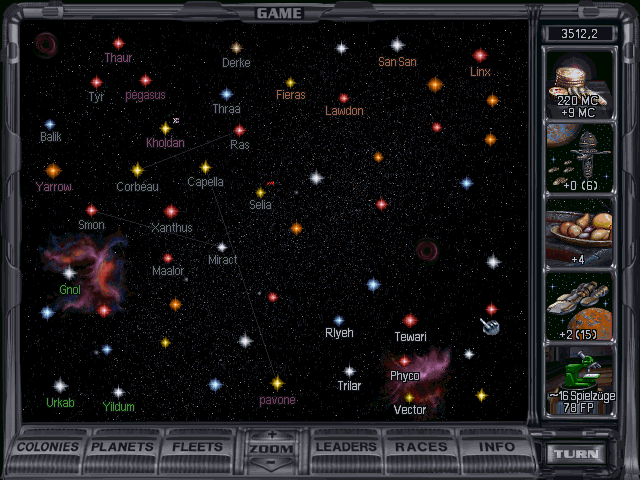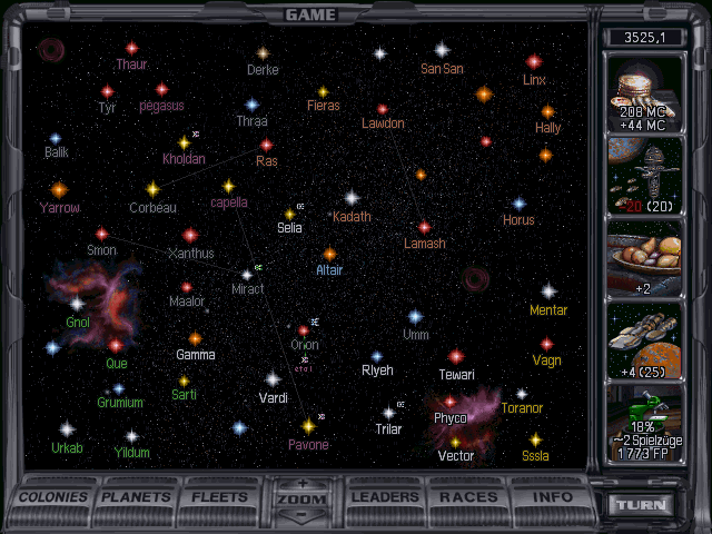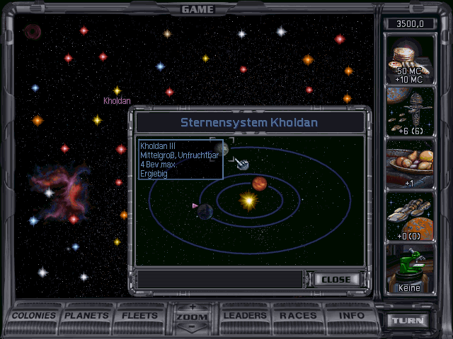 Das Heimatsystem ist etwas überdurchschnittlich: neben dem Heimatplaneten gibt es zwei mittelgroße Standardplaneten, einer ergiebig, der andere arm.