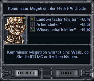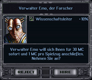 Das ist erfreulich. Emo ist natürlich der schwächste Wissenschaftsleiter, hier zudem erstmal nur Verwalter mit 10% Leistung, aber es gibt eben nur sehr wenige frühe Wissenschaftsleiter, da ist es schon ein Glück, nur Emo zu bekommen. Er wird irgendwann Bürgermeister sein und dann 30% bringen, was nicht zu verachten ist.