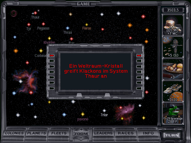 Ich vernichte das Kristall bei Thaur und besiedle den Planeten.