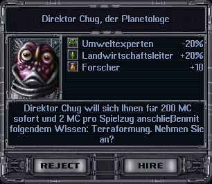 Chug ist ein extrem wirksamer Leiter, wenn man ihn früh bekommt. Hier kommt er etwas spät, und die Landwirtschaftsleitung hat bei den Klackons auch nicht den großen Beschleunigungseffekt wie bei Rassen ohne Landwirtschaftsbonus. Die 10 Forschungspunkte sind aber immer noch ein guter Beitrag, und die Terraformung wird ungemein hilfreich sein.