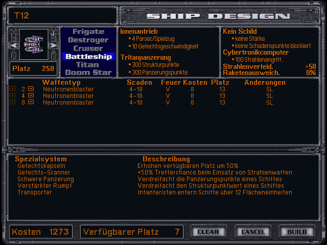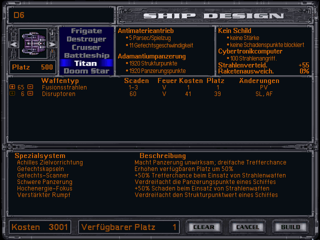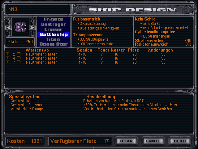 Und da haben wir auch gleich die Kehrseite der Medaille. Mit einer normalen Rasse hätte dieses Schiff Tritanpanzerung und einen verstärkten Rumpf.