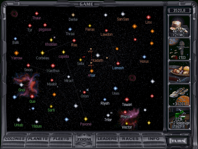 Pavone ist nun auch besiedelt. Diese vier guten Systeme sollten genügen. Ich werde noch ein paar Koloniestützpunkte bauen, aber weitere Sternensysteme werden wohl vor dem Orion nicht mehr dazu kommen. Thaur baut am zweiten Schlachtschiff.