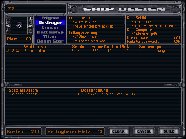Da keine Zortriumpanzerung verfügbar ist, wähle ich die Variante mit den 10 Zerstörern.