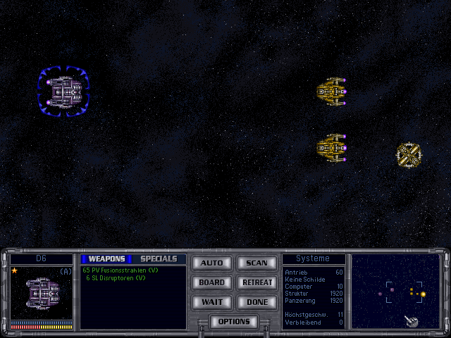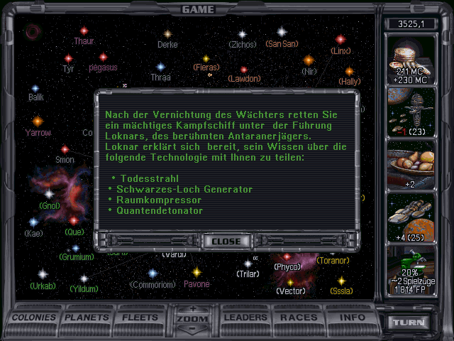 Loknar hat diesmal sechs Technologien im Gepäck, neben den genannten noch Partikelstrahl und Antimaterietorpedos. Direkt nützlich ist davon freilich nur der Todesstrahl, bedingt durch den Mangel an anderen starken Strahlenwaffen in diesem Spiel.