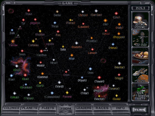 Insgesamt glaube ich, dass man mit den Klackons gute Gewinnchancen hat, nur die Strategie ist etwas kniffliger als mit den anderen Rassen. Ein Quäntchen Glück braucht man natürlich immer. Ich weiß nicht, wie das Spiel ausgegangen wäre mit den Sakkra als Nachbarn.