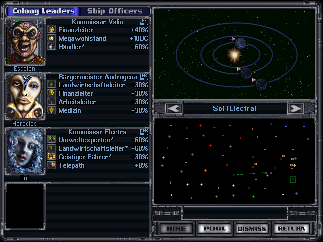 Die Kolonieleiter sind enttäuschend, wenn man bedenkt, dass ich mit einer charismatischen Rasse spiele und außerdem mit Tellik einen superberühmten Kommandanten habe. Der Arbeitsleiter ist brauchbar, Electra nützt mit den vielen Androiden relativ wenig.