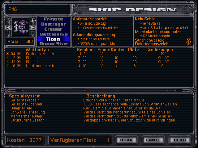 Ich tausche den Partikelstrahl gegen Neutroniumpanzerung und Uridium-Treibstoffzellen, später noch einmal gegen Adamantiumpanzerung.