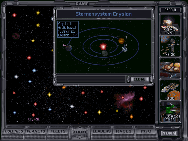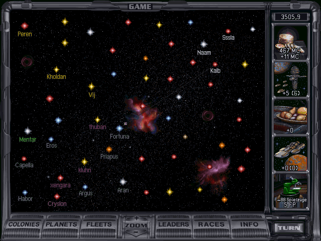 Das Heimatsystem ist nicht schlecht, es hat zwei zusätzliche Planeten, die gar nicht mal wenig Bevölkerung tragen können. Mit einer widerstandsfähigen Rasse sieht die Galaxis ja prinzipiell freundlicher aus. Die Startposition am Rand ist beruhigend. Eine zentral gelegene Heimatwelt hätte für eine abstoßende Rasse fast nur Nachteile. Kontakte haben keinen Nutzen, Nachbarn sind nicht mehr als potenzielle Aggressoren.