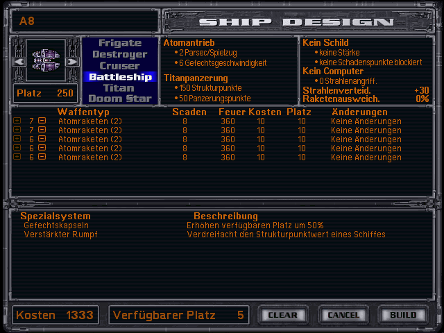 Eine weitere Attrappe, diesmal in Schlachtschiff-Größe. Die nötigen Technologien im Bereich Chemie werden jetzt aber bald entwickelt.