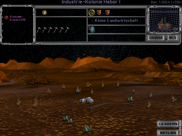 Die Silicoiden haben ein halbiertes Bevölkerungswachstum. Gleichzeitig haben sie aber durch die Widerstandsfähigkeit mehr Lebensraum, der sich mit ihrem natürlichen Wachstum nur sehr langsam füllen würde. Deshalb ist es angebracht, dem Wachstum auf die Sprünge zu helfen. Diese neue Kolonie im Heimatsystem wird Automatisierte Fabrik, Infanteriekaserne und Biosphären bauen und dann auf absehbare Zeit nichts anderes betreiben als Wohnungsbau. Mittelfristig sollte auch das Klonzentrum erforscht werden.