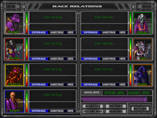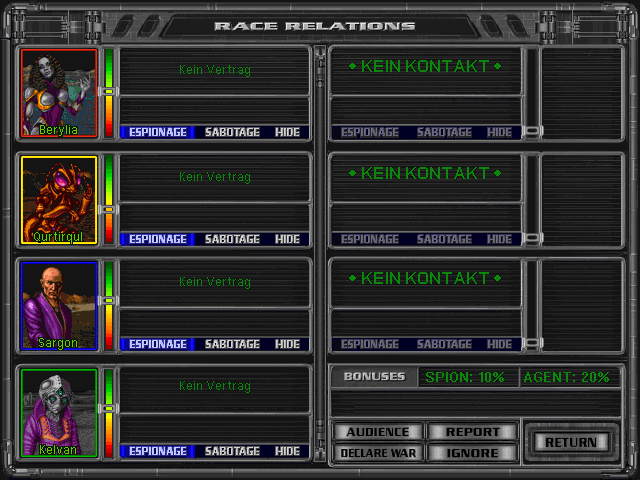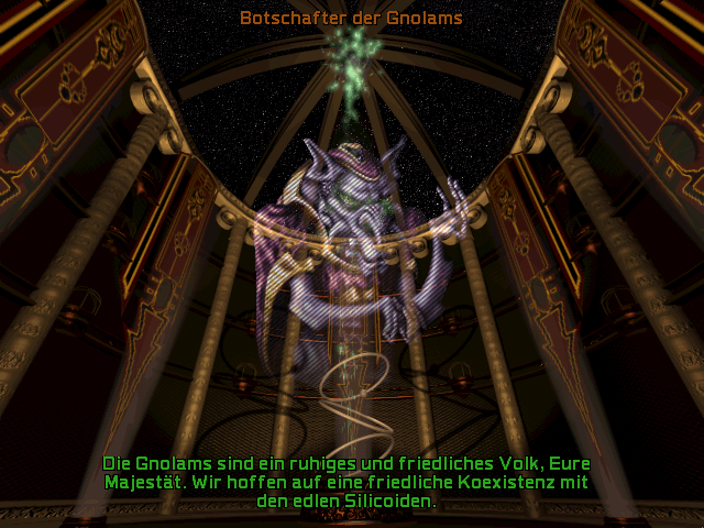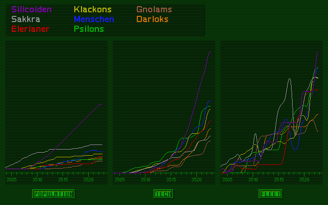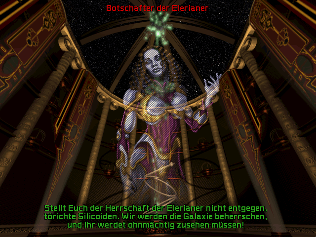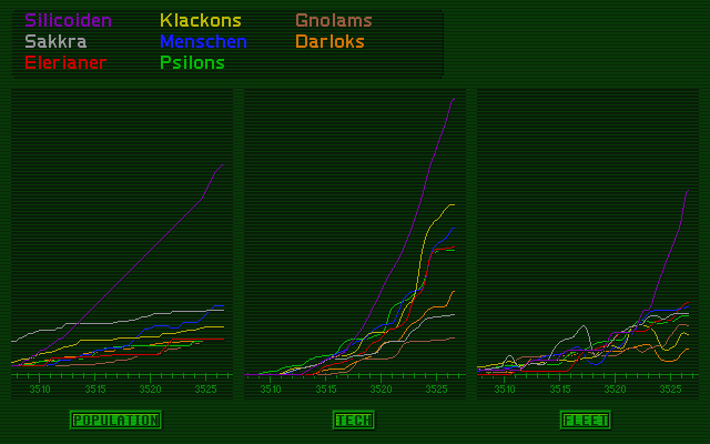 Das Spiel mit den Silicoiden ist mein erstes Spiel überhaupt mit einer abstoßenden Rasse. Ich gebe zu, gewisse Befürchtungen zu haben. Ich bin nicht sicher, ob man das überhaupt gewinnen kann. Ich sehe die Silicoiden früher oder später im Krieg mit allen Völkern, denn all die Maßnahmen, mit denen man normalerweise die Beziehungen zu anderen Völkern verbessert, die Verträge und das Tauschen von Technologien, stehen ihnen nicht zur Verfügung.