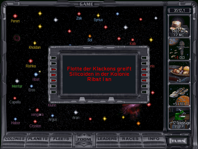 Die Klackons akzeptieren meine Reservierung nicht und zerstören einen der Außenposten. In den Kriegszustand führt das aber nicht.