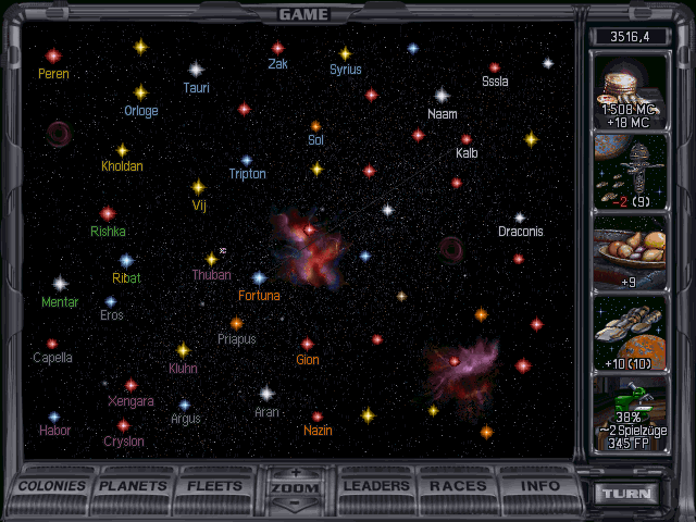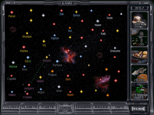 Es gibt im ganzen Quadranten kein einziges Monster und leider auch keinen Planeten von der Art, wie sie Monster typischerweise bewachen, also mindestens groß, mindestens reich und mindestens terranisch. Ein einzelner Planet wird deshalb nicht genügen für die Raumschiffproduktion. Aus Fortuna I und Ribat II könnte in ferner Zukunft etwas werden. Fortuna ist allerdings über ein Wurmloch direkt mit einer Kolonie der abstoßenden Sakkra verbunden und damit unattraktiv. Ribat II reserviere ich mit einem Außenposten.