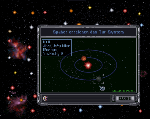 Und so kam es zu dem Kontakt: Die Meklars haben den Tundra-Planeten hinter dem Wurmloch besiedelt (den, den ich ignoriere). Insgesamt haben sie im Moment 3 Systeme.