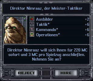 Auch der ist eine Anstellung wert, alleine wegen der 6 Kommandopunkte ("Operationen"). Die werden mir schon bald 60 Credits pro Zug sparen, das entspricht 6 Anführern mit Megawohlstand.