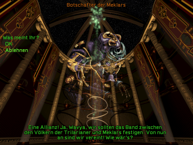Nein, RSW-242, ich gehe keine Allianz mit den Meklars oder sonst wem ein. Ich bleibe neutral, denn ich möchte nicht in anderer Leute Kriege hineingezogen werden.