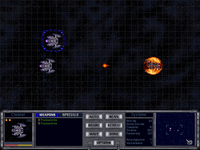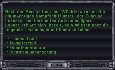 Xentroniumpanzerung und Dämpferfeld, quasi der Hauptgewinn im Orion-Lotto. Das ist dann doch etwas viel des Glücks für ein Demospiel. Dass man mit Glück gewinnen kann, muss nicht demonstriert werden. Ich gehe deshalb ausnahmsweise auf das letzte Autosave zurück und versuche das Ganze noch mal.